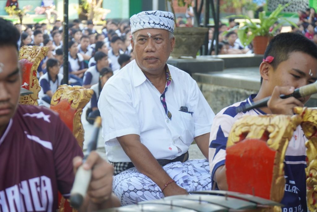 Sejak pagi hari, para guru, dan siswa telah mempersiapkan sarana upacara dengan penuh gotong royong. Bale Gong dihias dengan rapi dan dipenuhi berbagai banten (sesajen) sebagai wujud bhakti dan rasa syukur. Prosesi persembahyangan dipimpin oleh pemangku, diikuti dengan penuh tertib oleh seluruh peserta yang mengenakan pakaian adat.